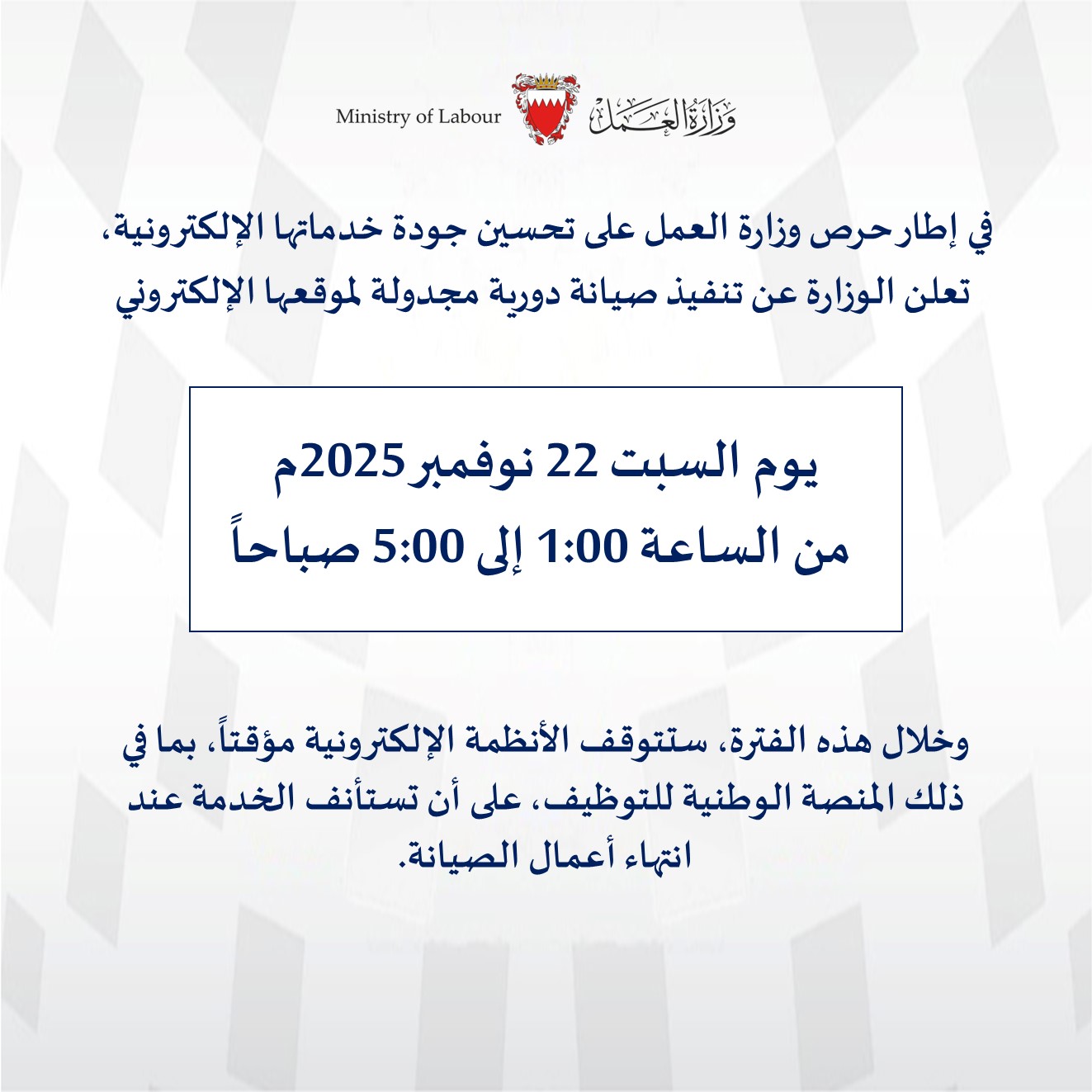 - Notification to the Ministry of Labour regarding cases of workforce reduction due to total or partial closure of establishments